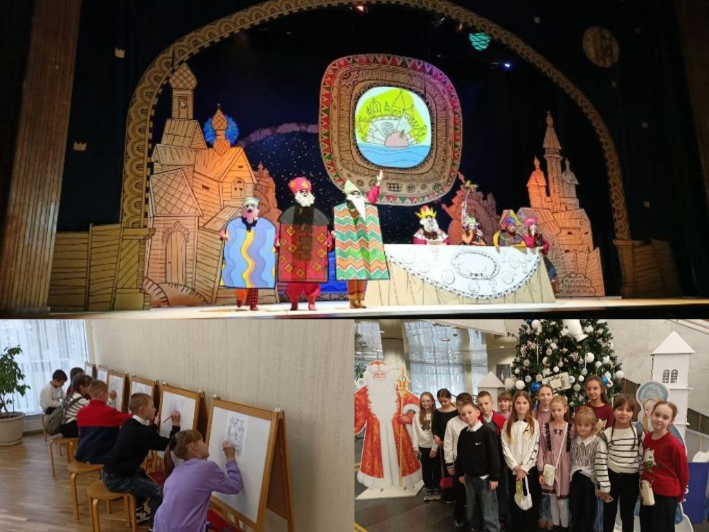 Перед началом сказки школьники побывали в настоящем сказочном путешествии. Для них в фойе театра работали интерактивные площадки. Мастер-классы по декоративно-прикладному творчеству, танцевальные флешмобы и новогодние хороводы провели педагоги краевого Дворца творчества.